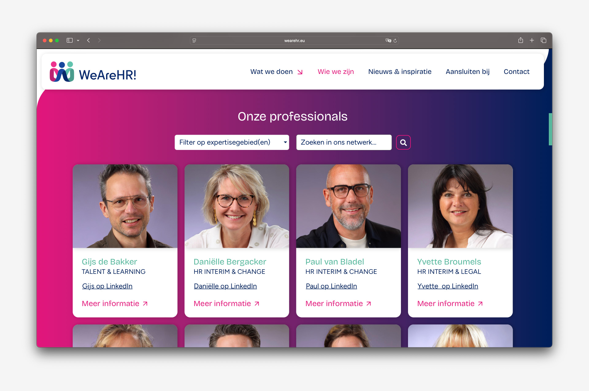 Het resultaat is een website die klopt met wie WeAreHR! nu is. Een plek waar associates zich in herkennen, die vertrouwen uitstraalt naar buiten, en die het netwerk ondersteunt.